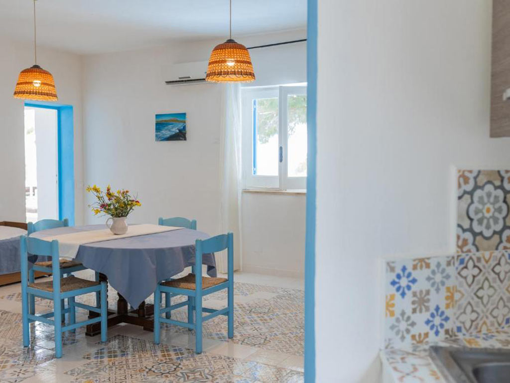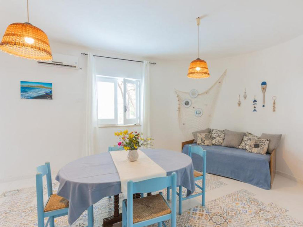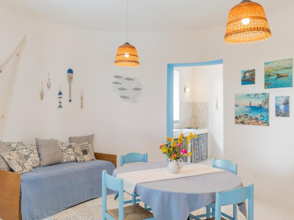 > BILO 11 (2+2 posti) : camera da letto matrimoniale, ampia cucina soggiorno abitabile con due letti singoli unibili, bagno completo. Dotato di aria condizionata, Tv sat. Ampio terrazzo attrezzato con tavolo, sedie e sdraio e giardino indipendente.