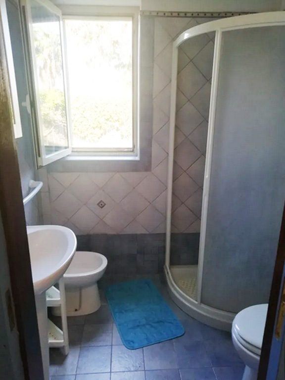 Il bagno è completo dotato di box doccia, phon e finestra.