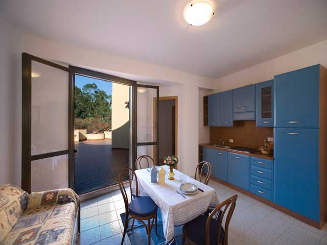 > Bilocale 4 posti: composto da cucina interna o esterna in patio coperto, 2 stanze con possibilità di aggiungere un letto