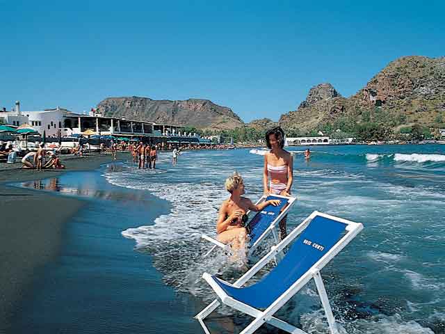 L'Hotel Conti si affaccia sulla nera sabbia della incantevole baia di Ponente.