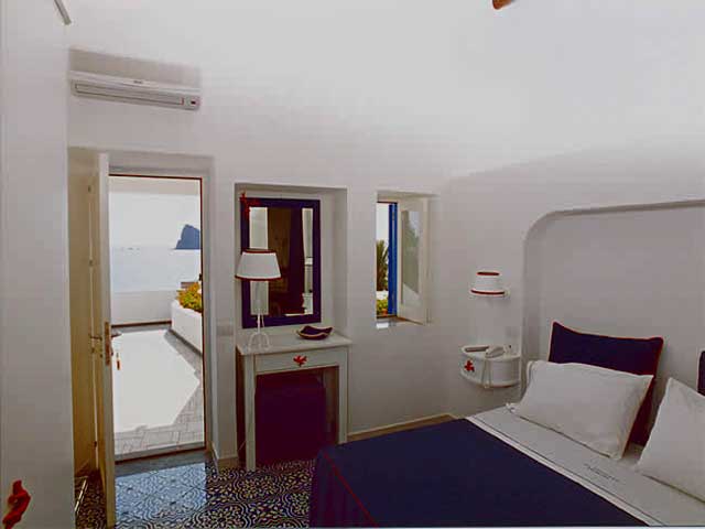 A quiet and refined environment warmed up by the hospitality of the managers. From the room terrace with panoramic view it is possible to enjoy thr striking sight of the islets that crown Panarea. In the private terrace of your room you may have breakfast, tasting, cocktails, appetizers and you may even have dinner to the moonlight.
